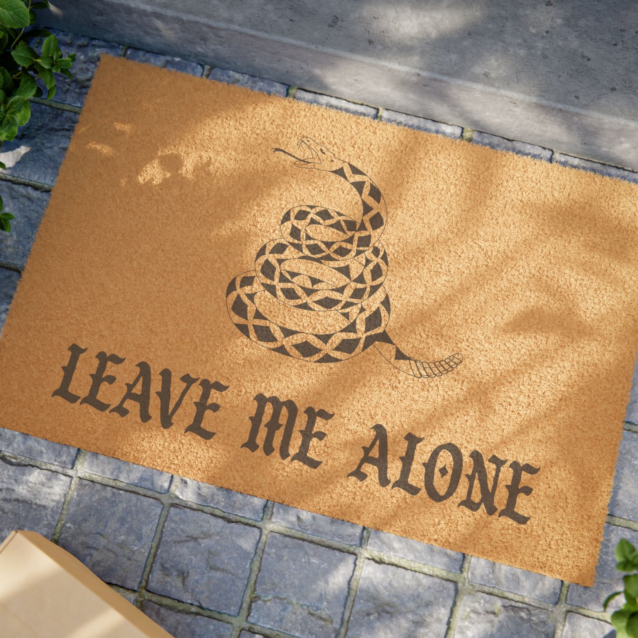 Shop › Leave Me Alone Doormat Image 1 of 3 Image 2 of 3 Image 3 of 3 Leave Me Alone Doormat $45.00 LET EM KNOW. 24" × 16" (61cm x 40.6cm) tufted coir coconut fiber with a rubber backing. Add To Cart Added! LET EM KNOW. 24" × 16" (61cm x 40.6cm) tufted coir coconut fiber with a rubber backing.